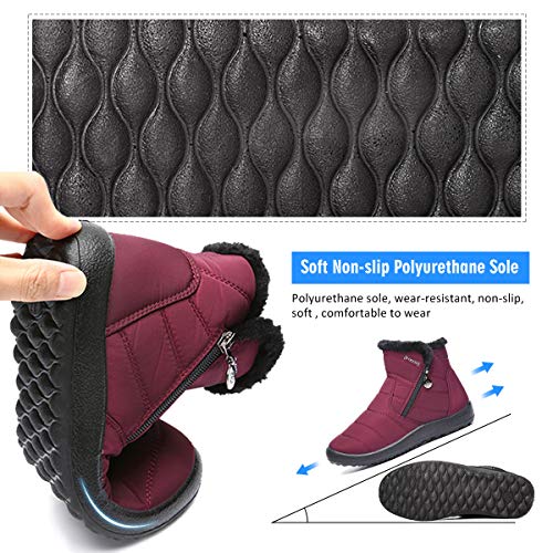 gracosy Botas de Mujer 2020 Otoño Invierno Goma Encaje Forro de Piel Punta Redonda Botas de Nieve Zapatos de Trabajo Formal Calzado Antideslizante Ligero Botines Que Caminan