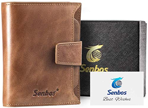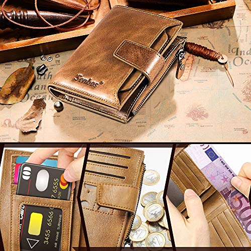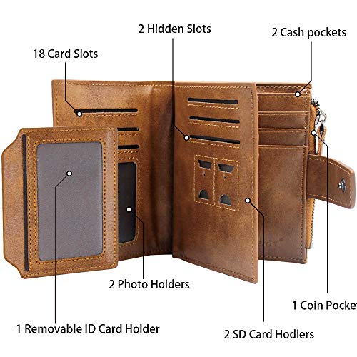 Senbos Carteras para Hombre, Piel Monedero con RFID Bloqueo, 18 Ranuras para Tarjetas de Crédito, 1 Bolsillo con Cremallera e Soporte Extraíble para Tarjetas de Identificación con Caja de Regalo