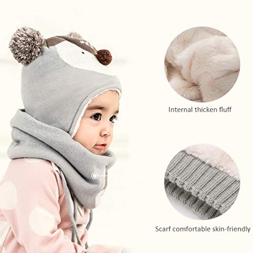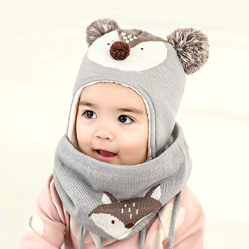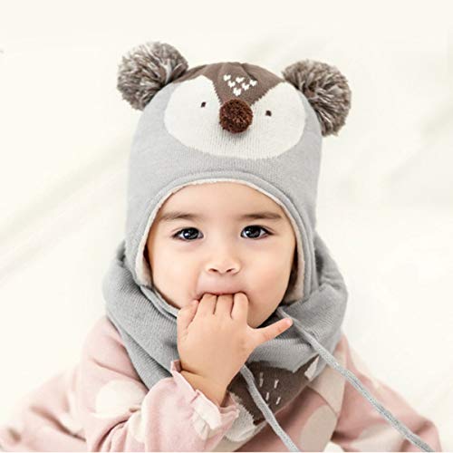 DORRISO Linda Niños Sombrero y Bufanda Guantes Otoño Invierno Primavera Gorro Bebe Calentar Pequeña Zorro Gorro Bufanda Guantes Conjunto Sombrero de Niño Gris