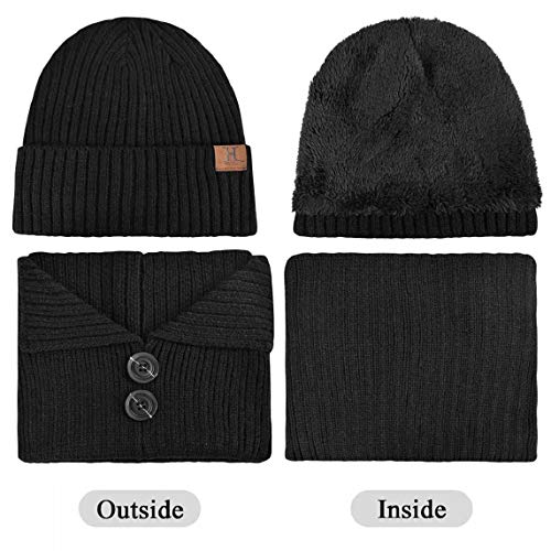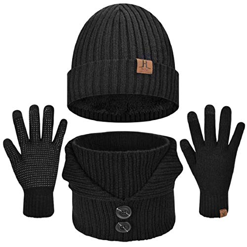 heekpek Conjunto de Invierno Unisex Gorro de Punto Cálido Bufanda y Guantes de Pantalla Táctil con Botón para Mujer