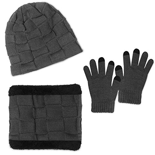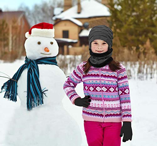 Lotisie Promoción Nino Bufanda Gorro Guantes Beanie Unisexo Set de Bufanda Conjunto de Guantes Táctiles Antideslizante Punto Sombreros Invierno Regalos Hombre Mujer, Gris; Para niños de 3 a 9 años
