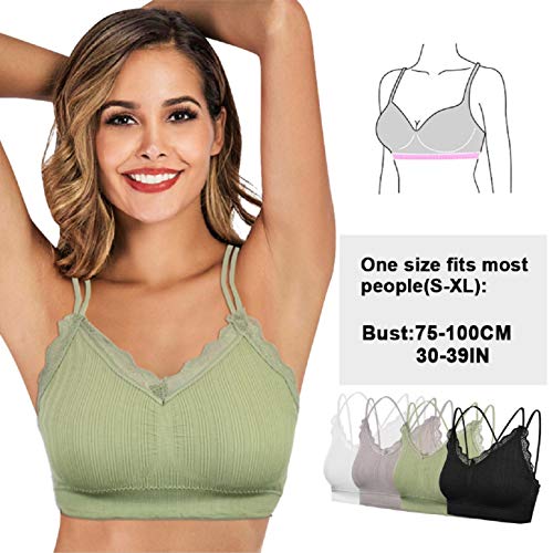 UMIPUBO 4 Piezas de Sujetador de Camisola para Mujer Sujetador de Tubo de Cuello V Banda Sujetador de Dormir Sujetador Deportivo Ropa Interior con Tirantes Elásticos (E, Talla única)