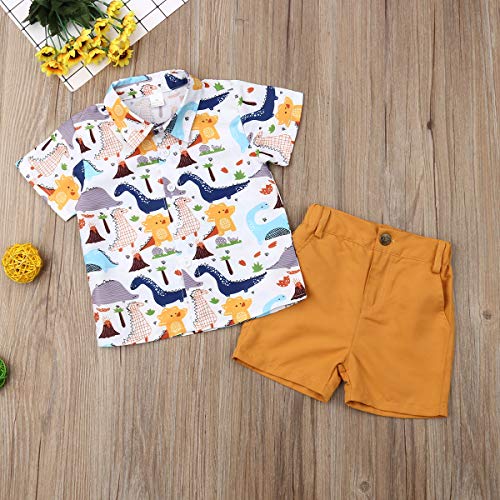 Bebé Niño Traje de 2 Piezas Conjunto Top Camisa de Manga Corta Pantalón Corto Camiseta con Estampado Infantil Ropa Verano de Playa para Vacaciones (Dinosaurio, 2-3 Años)