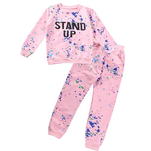 dPois Conjunto de Top y Pantalones para Niñas Sudadera Estampado Traje Chándal Deportivo Correr Ejercicios Rosa 11-12 años