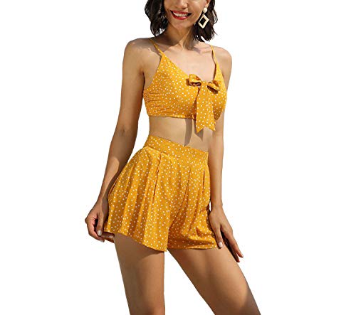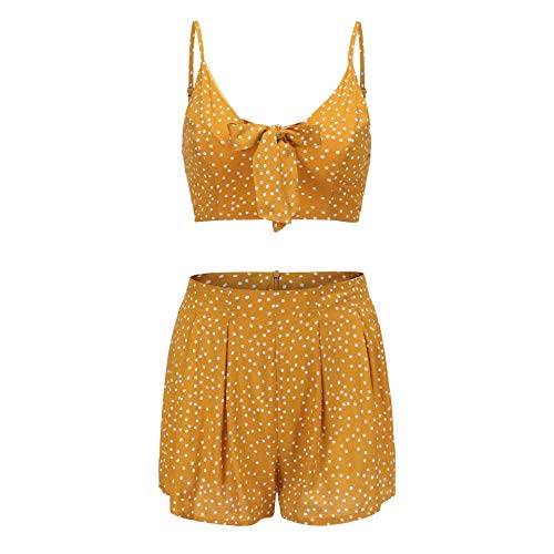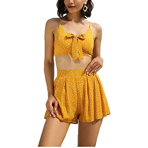 HaiDean Conjunto Moda Mujer Elegante Mujer Ropa De Vacaciones Modernas Casual Lunares Sling Top De Tubo Falda De Pantalones Pantalones Cortos Conjunto (Color : Amarillo, One Size : L)