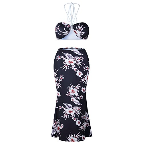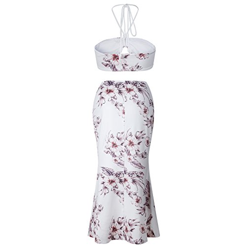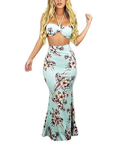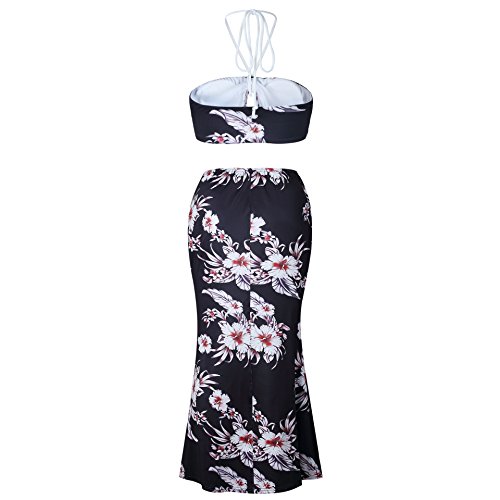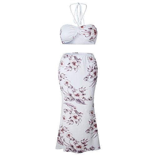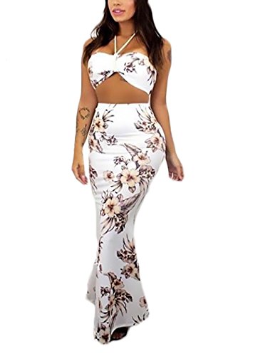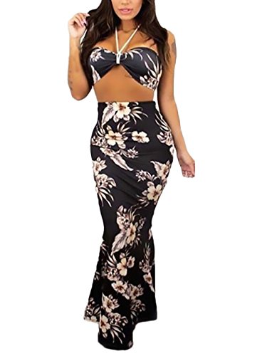 - Mujer Conjuntos Bandeau Blusas Talle Alto Apretados Falda Tubo Verano Elegantes Classic Chic Estampado Flores Sin Mangas Crop Top Y Faldas Largas Vestido 2 Piezas