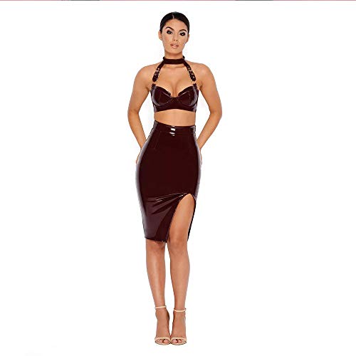 Promworld Fiesta Mujer Bandage,Conjunto de Falda Dividida en Tubo de Cuero Brillante Two-Red_S,Vestido Sexy Blusa Tallas Grandes Tunica Shirt Vestidos