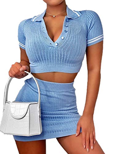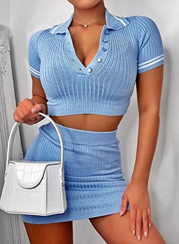 - Diseño único: Traje sexy de 2 piezas para mujer, conjunto con top camiseta corta de manga larga + falda, es de moda y elegante