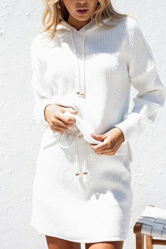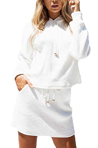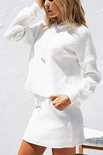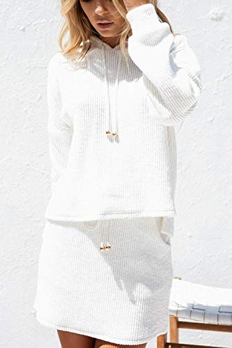 Mujer Sudadera con Capucha Camiseta Top Sólido Bodycon Mini Falda Conjuntos Blanco S