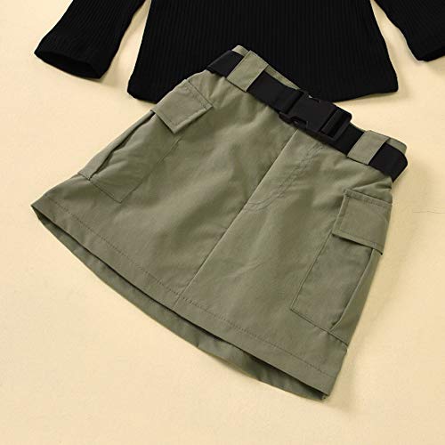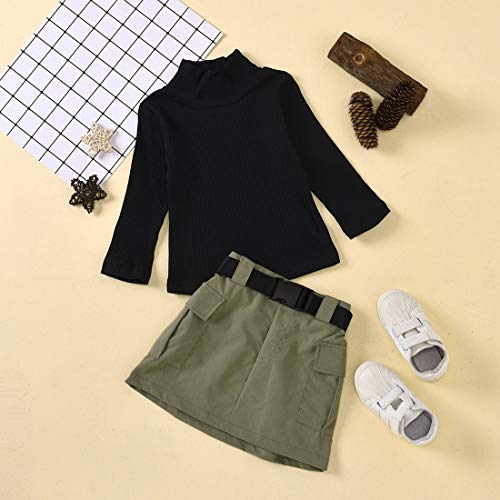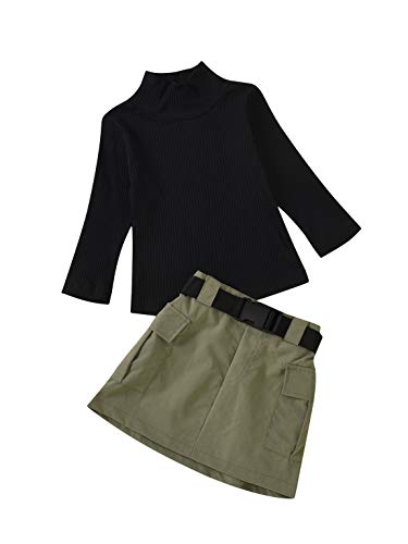 - Diseño: Suéter de punto de cuello alto de color sólido Camo de manga larga con estampado de una línea de falda Top + cinturón. Conjuntos de minifaldas para niñas Se pueden combinar con abrigo, leggings, botas. Este vestido hará que tu niña sea más adorable y a la moda.
