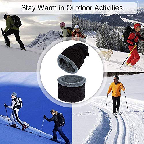 - 【Caliente Gorro Set】Forro de lana y tejido acrílico. Gorro de punto acrílico más grueso y acogedor, con forro suave y suave, muy cómodo y cálido
