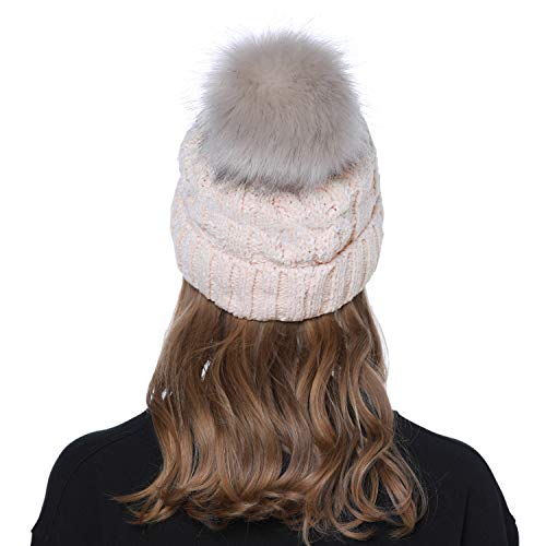 - Buen material: 100% hilo de chenilla para la parte tejida, piel sintética para pompones, lo convierte en un gorro pompón suave, elástico y cómodo.