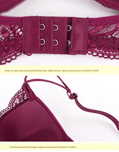 Nature Mujer Delgado De encaje Push Up 3/4 Taza de Sujetador y Bragas Conjuntos - (Vino rojo ES-85B)