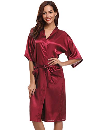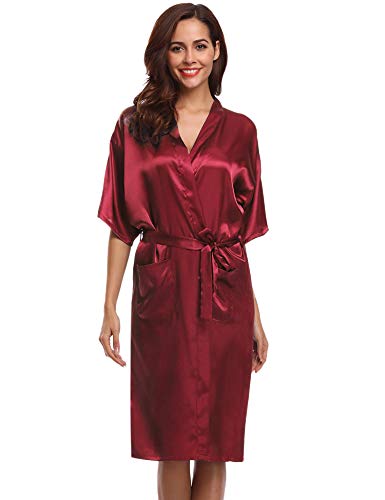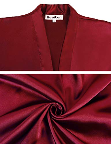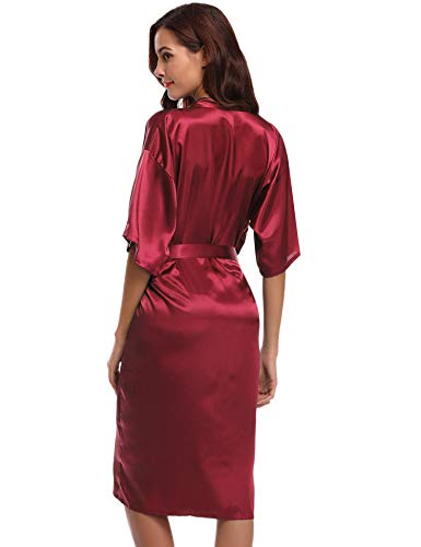 Hawiton Kimono Mujer Bata Saten Manga Corta Novia Albornoz Boda Pijama de Seda Vestidos con Cinturilla Elegante Ropa de Dormir Verano
