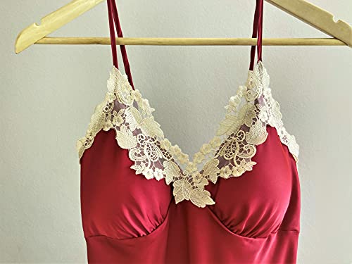 - ❤【Elegante diseño】Esta ropa de dormir de Lachi con un sexy escote bajo, borde de encaje, sin espalda, te hará lucir más seductora. Las correas de hombro son ajustables. Usted puede ajustar la longitud según su altura incluso.