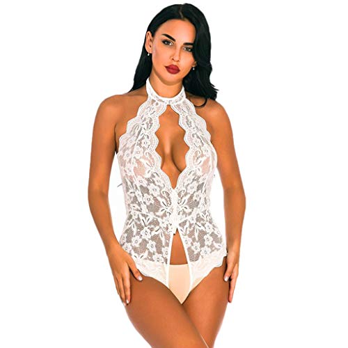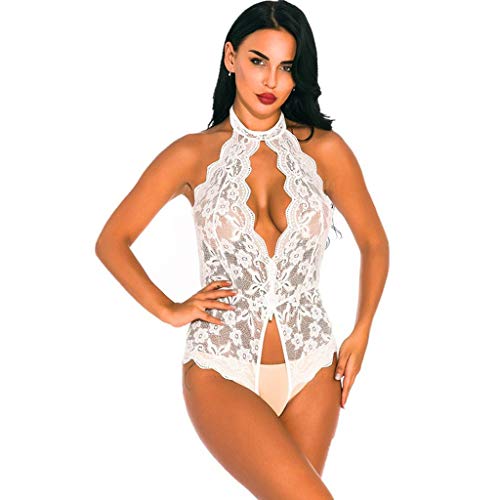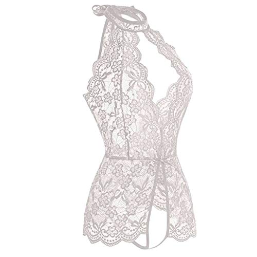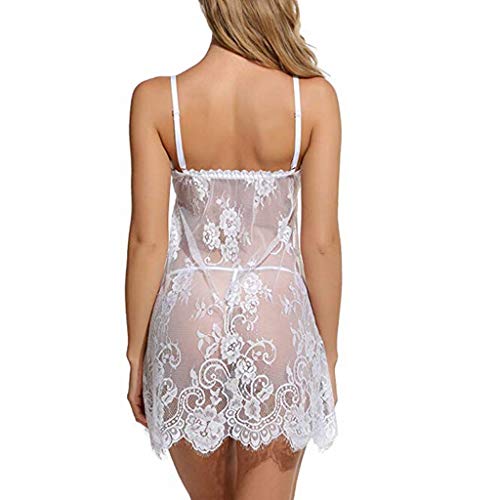Lenceria Erotica de Mujer,SHOBDW Babydolls Lenceria Sexy Ropa Interior Vestido Camisola De Encaje Arco Tangas G String Conjunto De Ropa De Dormir De Talla Grande para Mujer(Blanco,XXL)
