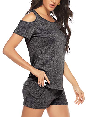 Aibrou Mujer Conjunto de ropa deportiva Secado rápido Top y pantalones cortos Chandal 2 piezas ropa de fitness para Gimnasio Yoga de entrenamiento (Gris oscuro L)