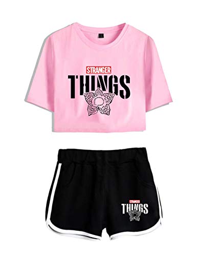 Conjunto Mujer Top y Pantalones Cortos Stranger Things, Conjunto Deportivo Camiseta y Pantalón Stranger Things Chica, Chándal para Niñas y Mujers (31,XS)