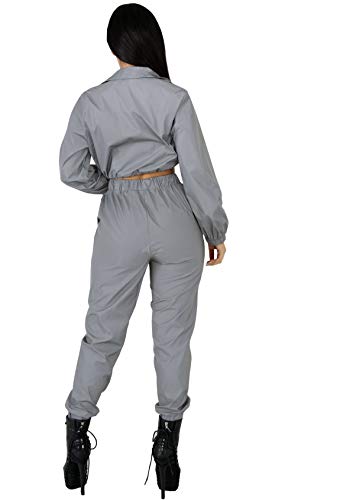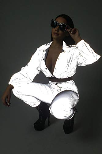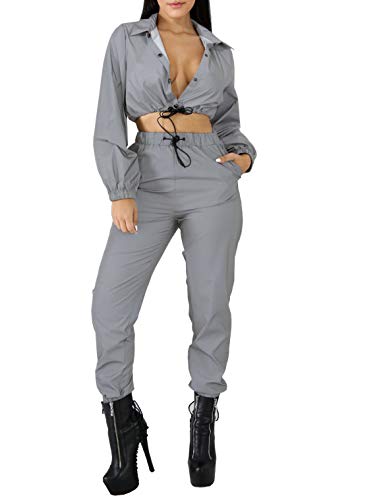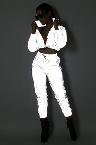 NewL Conjunto Reflectante de Dos Piezas con Cordones, Top Corto y Pantalones Traje del Festival del Club Hip Hop Traje de chándal Joggers