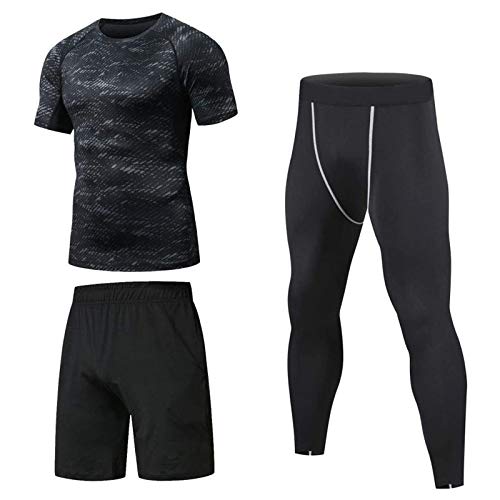 Niksa 3 Piezas Conjunto de Compresion Hombre, Camisetas Compression Mallas Running Pantalon Corto Deporte Ropa Deportiva Hombre para Running, Correr, Gym, Fitness L