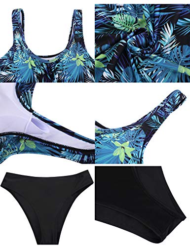 - 【Bañador Trendy】Bañador mujer deportivo Tankini 2 piezas, consta de tirantes y copas ajustables, Los tirantes se pueden fijar en paralelo o de dos formas para ajustar la elasticidad de la espalda. Adecuado para la mayoría de las mujeres.