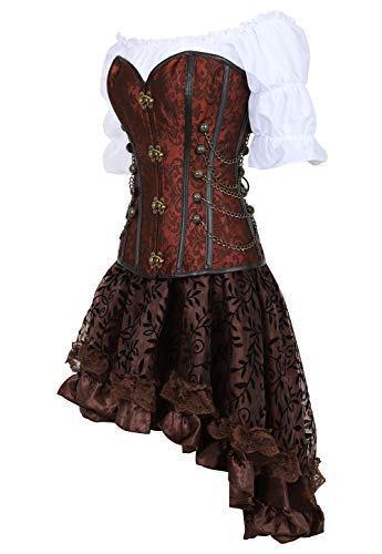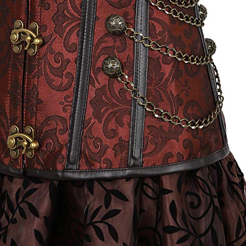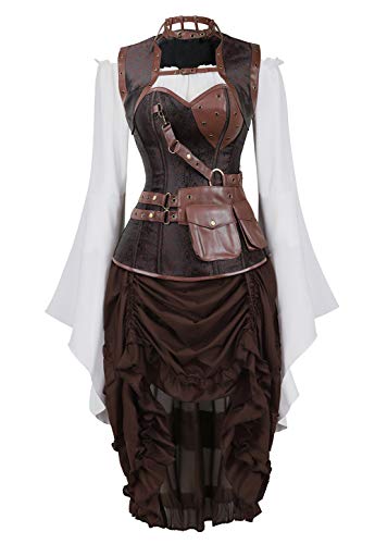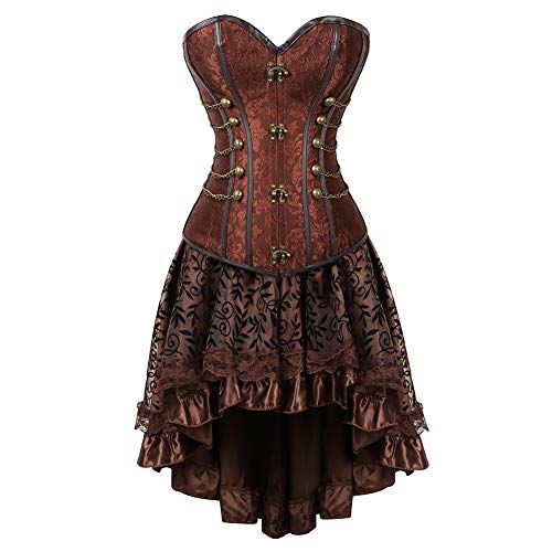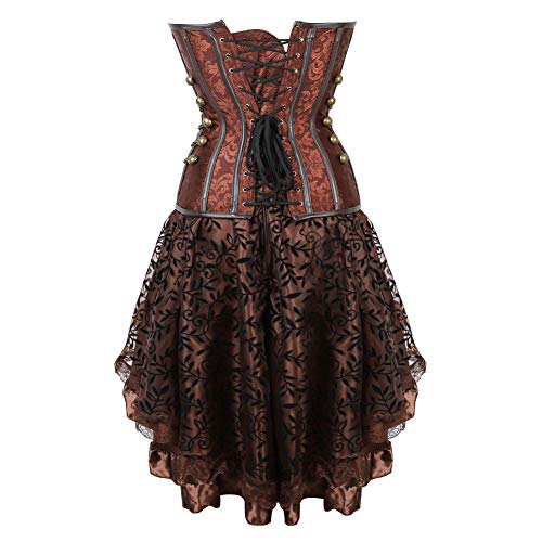 Grebrafan Steampunk Corsé Acero Corset con Falda Conjunto Fiesta Halloween Disfraces (EU(34-36) M, Marrón)