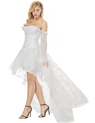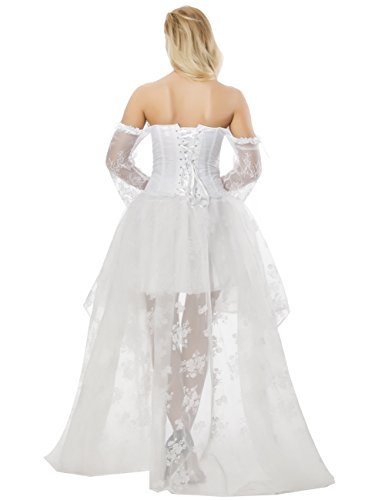 Grebrafan Steampunk Corset Blusa Fiesta Mujer Corsé de Encaje y Falda Conjunto (EUR(38-40) XL, Blanco)