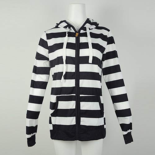 SHOBDW Mujeres Cremallera Camisetas de Manga Larga Sudadera con Capucha a Rayas Abrigos de Invierno Chaqueta de Mujer Casual Jerséis Delgados Outwear (Negro,L)