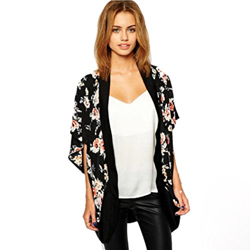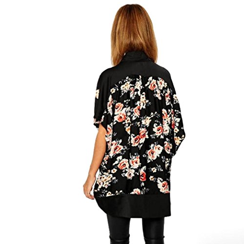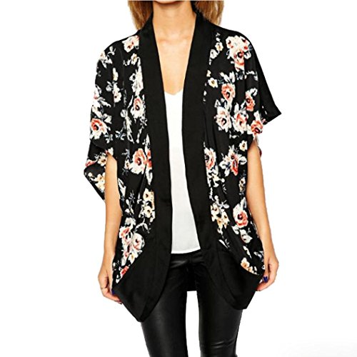 DEELIN Manga Corta De La ImpresióN Floral De La Gasa del Verano De Las Mujeres del Verano Que Cubre La Cubierta Superior De La Rebeca del Kimono del MantóN De La Gasa (S, Negro)
