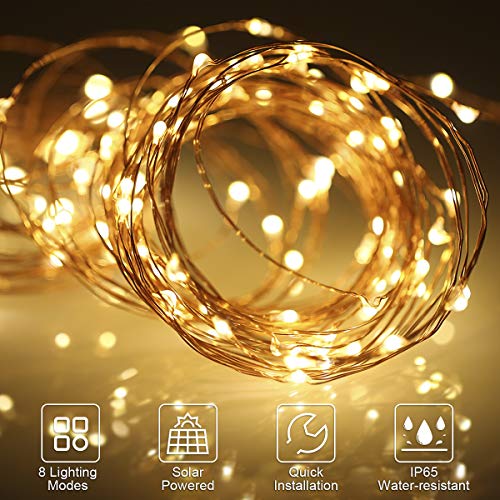 Guirnaldas Luces Exterior Solar,Tomshine 2 Pack 12m 120LEDs Luces Solares LED Exterior Jardin,IP65 Impermeable,8 Modos,Cadena de Luces Led Decorativas,para Navidad,Fiestas,Bodas,Patio(Blanco Cálido)