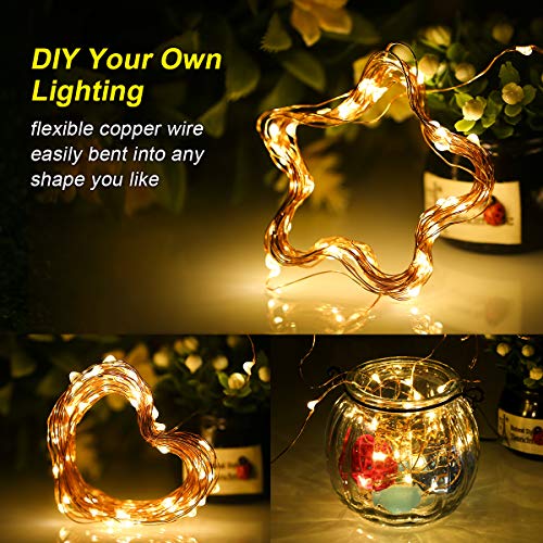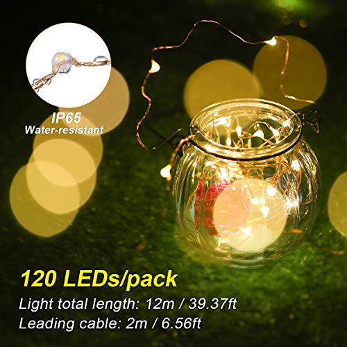 - 【Maravillosa Decoración】: La luz de cadena de alambre de cobre flexible de 12 m de largo y 2 paquetes, cada uno con 120 piezas de LED blancos cálidos, fácilmente doblados en cualquier forma que desee, puede cumplir con los requisitos de decoración de bricolaje.