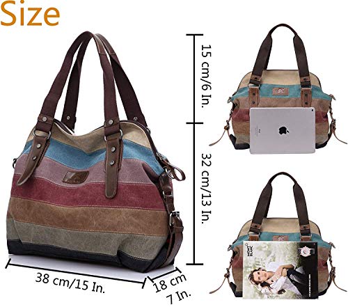 - 【DiseÑO ÚNico Bandolera】Impreso con rayas de colores brillantes, nuestro bolso de lona se ve de moda. La bolsa de asas perfecta para la escuela, los negocios, los viajes, las compras, etc.