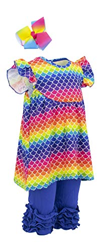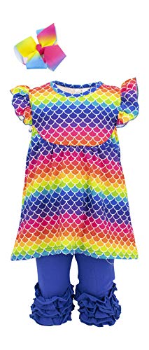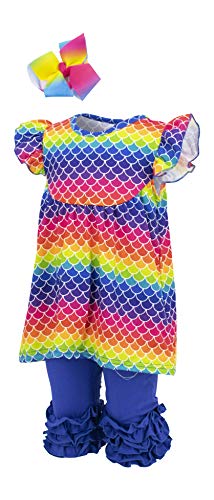Unique Baby Girls - Conjunto de capri con volantes y diseño de sirena arcoíris - Azul - 12 meses/XXS