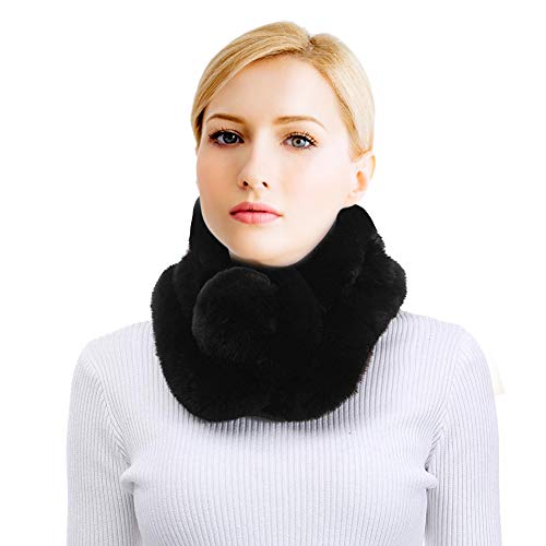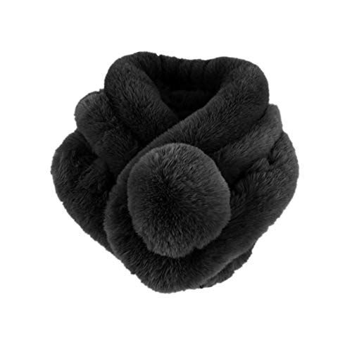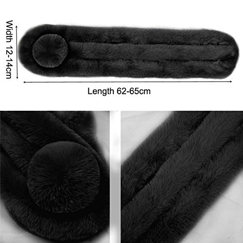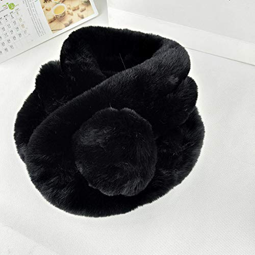 Bufanda Piel sintética Bufandas de piel sintética negras Cuello de invierno Bufanda de cuello cálido con bola suave para mujeres (Negro)