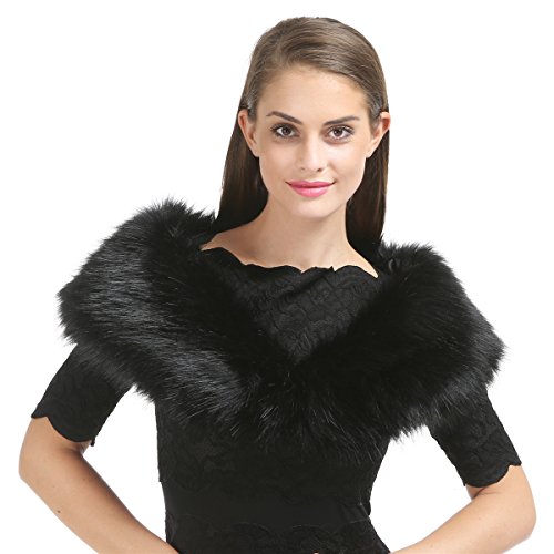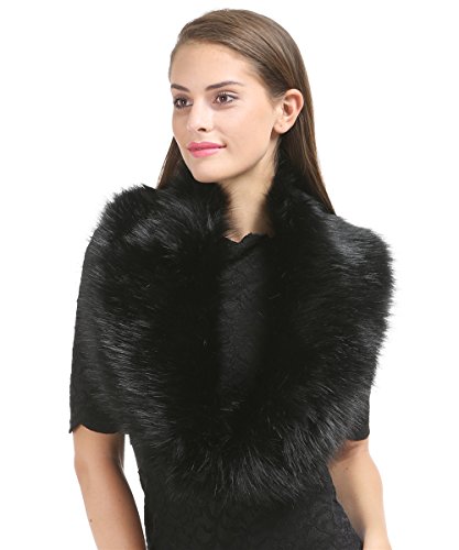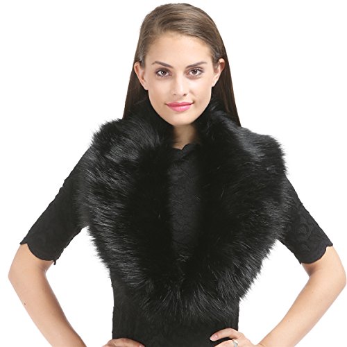 Saferin Cuello Mujer Bufanda de Piel de Zorro Sintética (SFO02 Negro)