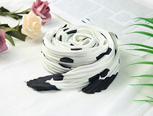 sourcing map Bufanda 50s Plisada Cuello Rombo Mano Pañuelo Lunares Pañuelo Pelo Envolturas Venda Para Mujer Blanco Negro 110x45cm / 43x28 pulgadas (LxW)