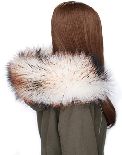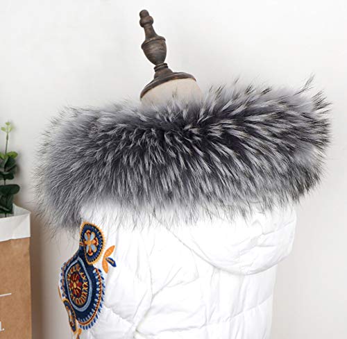 Ysting - Bufanda Chal Cuello de Piel de Mapache Auténtico DesmontableTeñido para Abrigo Chaqueta Chaleco Parka de Mujer (D, Longitud del forro 70cm por 20cm ancho)