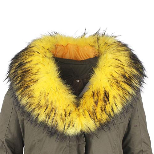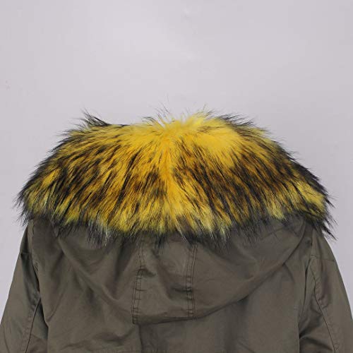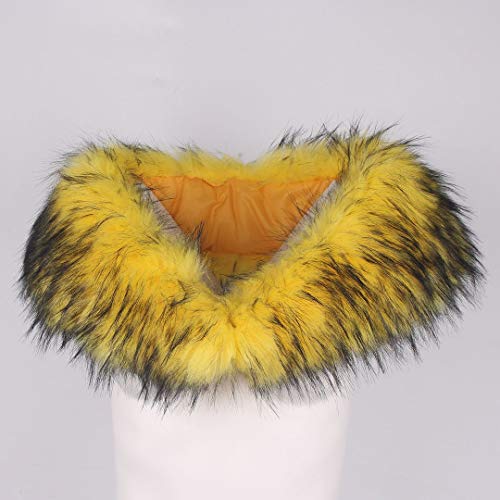 Deargles Cuello de piel sintética, cuello de piel sintética, cuello de piel sintética, bufanda de pelo de mapache, abrigo de invierno con capucha, borde de 90 x 18 cm amarillo Talla única