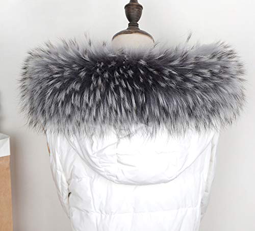 Dancel - Bufanda de pelo de mapache auténtico, para mujer, para cuello de abrigo o borde de capucha, 80 x 13 cm