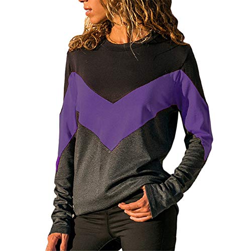 Costura Color De Contraste Cuello Redondo Manga Larga Camiseta Mujer Top,Belasdla Mujer Camisas Mujer Verano Elegantes Casual Mujer Mang A Costura De ImpresióN De Manga