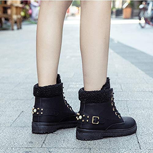 Baijiaye Botas de Nieve Mujer Invierno Fur Botines Planos Calientes Tobillo Zapatos Forro Polar Casual Negro