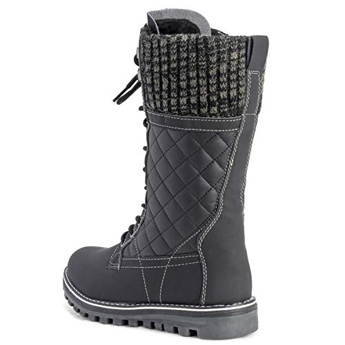 Polar Mujer Nieve Durable Al Aire Libre Térmico Invierno Calentar Impermeable Mitad De La Pantorrilla Botas - Negro Cuero - UK3/EU36 - YC0379
