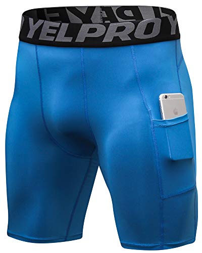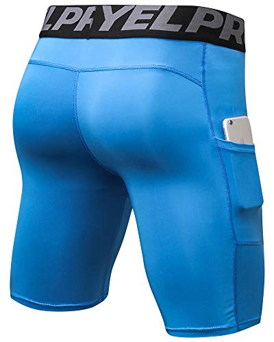 Shengwan Pantalones Cortos de Compresión Hombre Térmicos Correr Gimnasio Mallas Cortos con Bolsillo Azul M