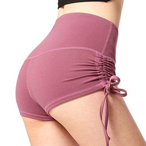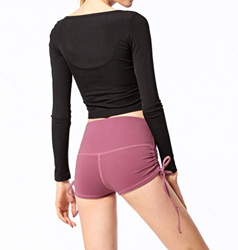 YOUCAI Cintura Alta Elástica Mujer Verano Shorts Color Sólido para Running Training Fitness Estiramiento Yoga y Pilates Merlot Red M