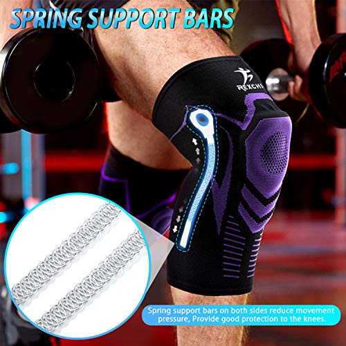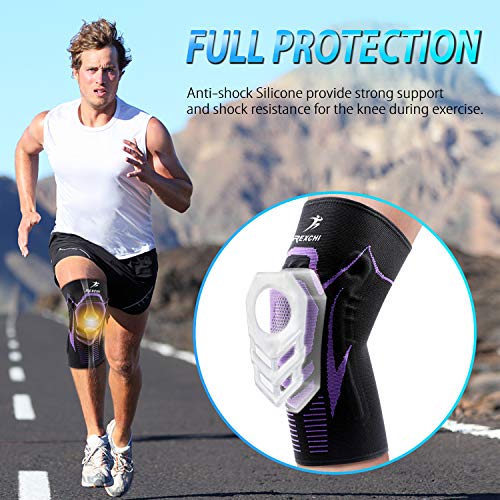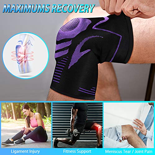 ENONEO Rodillera Ligamentos 2 Piezas Transpirable y Antideslizante Vendaje de Rodilla Hombre y Mujer Rodilleras Deportiva Compresion para Voleibol, Correr, Crossfit, Bicicleta(Morado M)