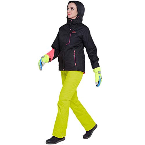 Lvguang Chaqueta de Esquí a Prueba de Viento en Color Liso & Pantalones de Esquí para Mujer (Amarillo, Asia M)