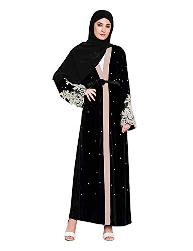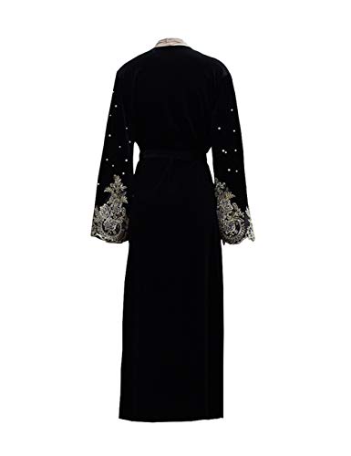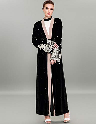 TAAMBAB Vestido de Encaje Abaya Musulmán para Mujer - Abrigo de Terciopelo Manga Larga Kimonos Árabe Dubai Kaftan Caftan Jalabiya Boho Ropa Largo Robe
