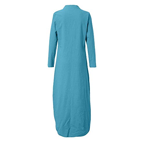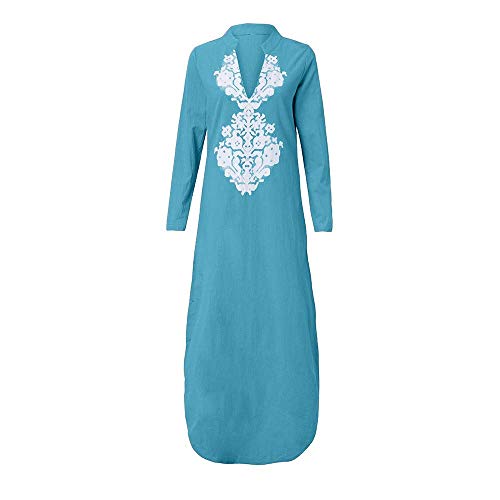 Vestidos Mujer Casual Largos Vestido Cuello V Manga Larga Otoño Vestidos Boho Hendidura Falda Larga Maxi Vestido Bluelong L