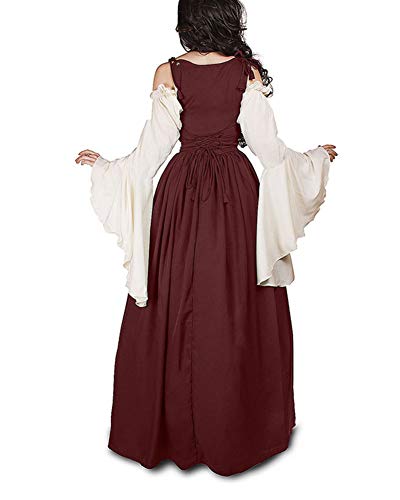 Guiran Vestido Vintage Mujer Medievales Disfraz Renacentista Cosplay de Halloween Rojo S