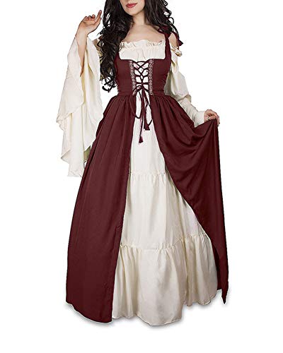 - ?Característica:Vestidos largos medievales hasta el suelo con manga acampanada,vintage y con cordones en ambos.El frente y la parte posterior del vestido se pueden ajustar para adaptarse a su figura.